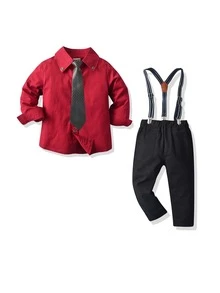 ولد طفل ربطة عنق قميص & بنطلون بحمالات