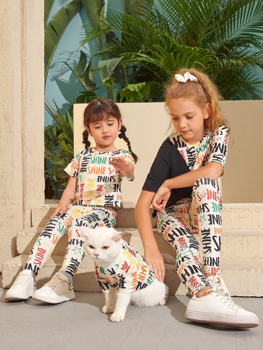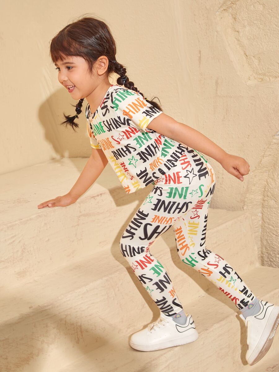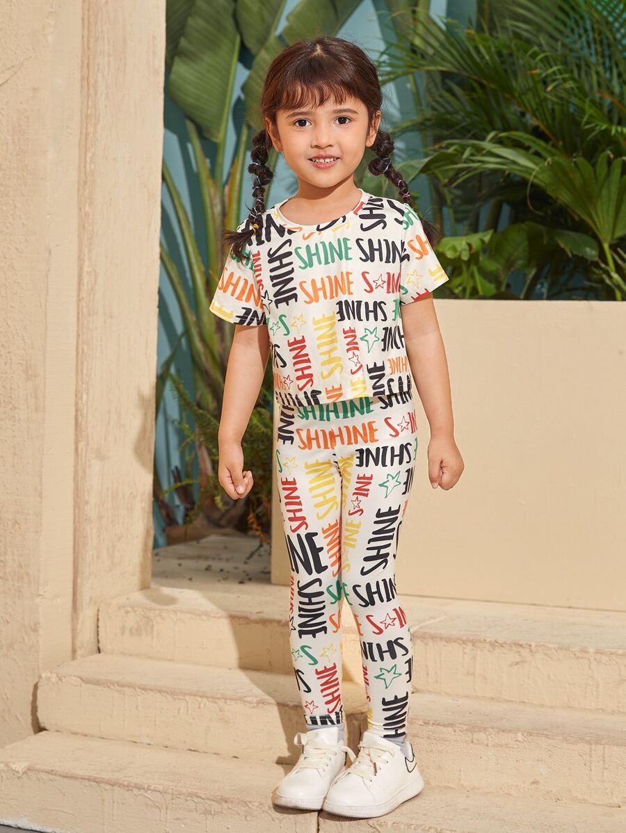 لباس علوي طباعة نجوم وحروف قطعة واحدة لفتاة صغيرة