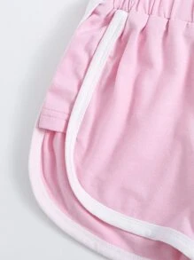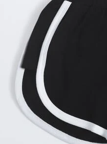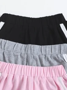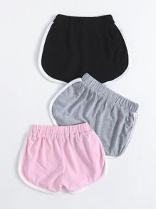3 شورتات بنات صغيرات مزينة بتباين الألوان و بحواف دبوسيه
