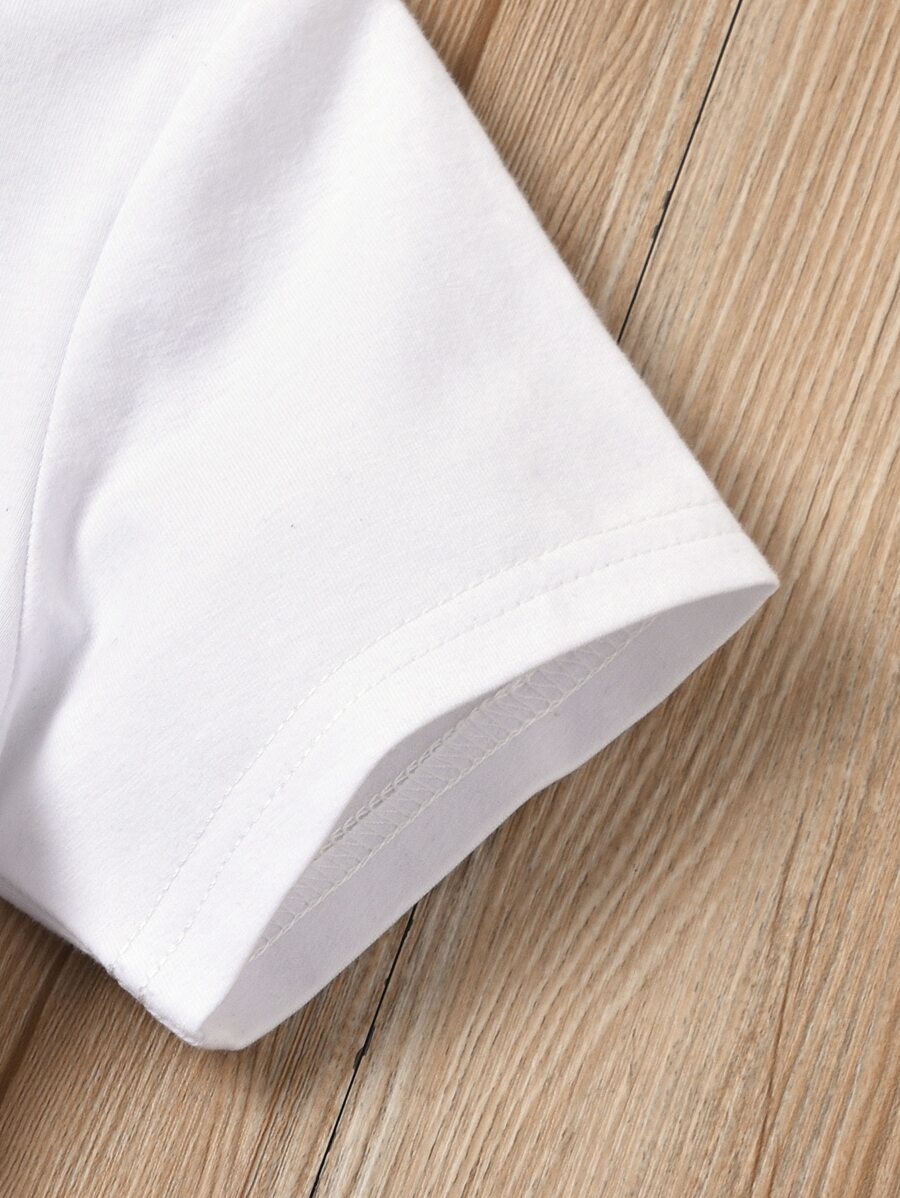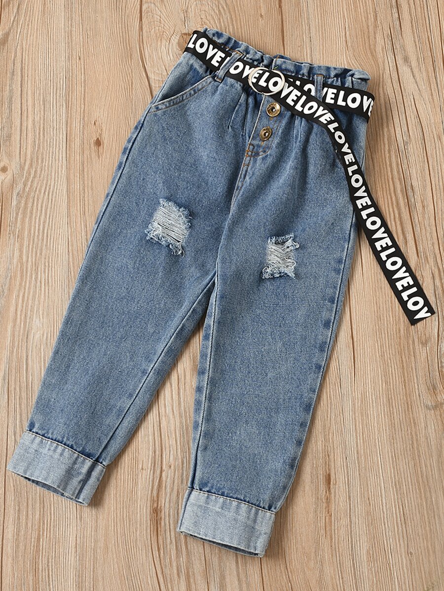 قميص قصير برسالة لفتاة صغيرة مع جينز ممزق