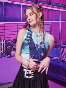 Yukinanami لباس علوي تانك قصير بجرافيك شخصية رسوم كارتون