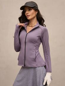 جاكيت رياضي دافئ بجيب مائل وبسحاب بفتحة ابهام