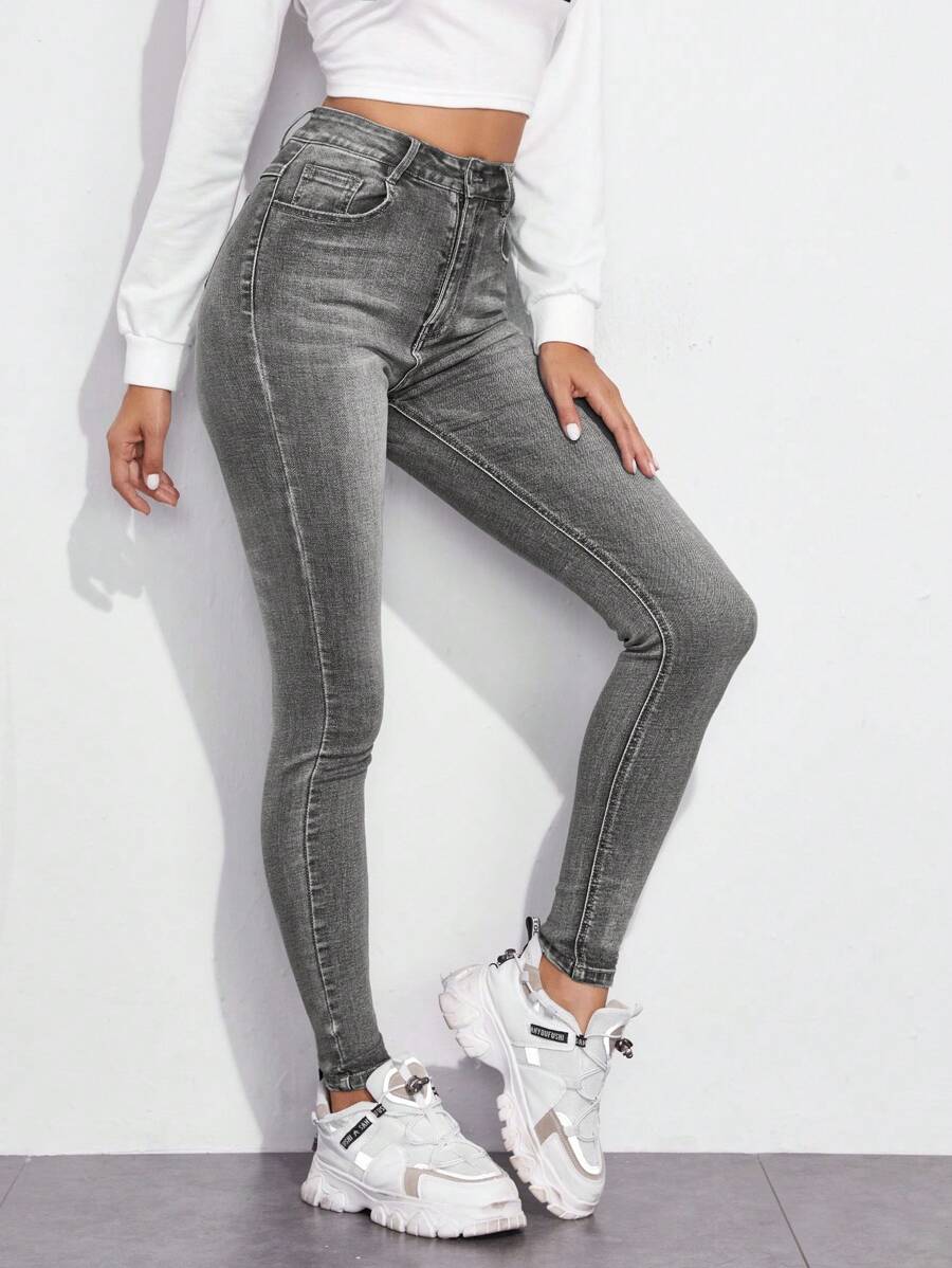 بنطلون جينز نحيل سستة طائر خصر عالي