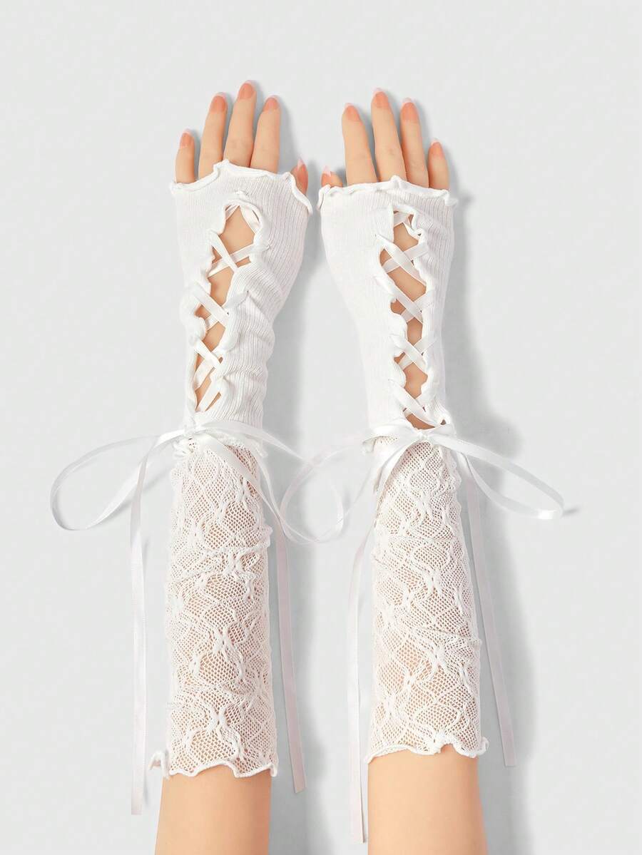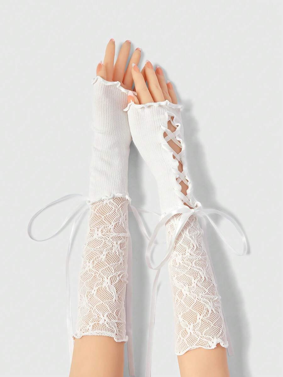 Kawaii زوج من أكمام الدانتيل Y2K DIY أكمام زخرفية قصيرة ذات موحد اللون مفتوحة الأصابع وأكمام معقوفة للرسغ، أكمام طويلة وقابلة للطي، مناسبة لمناسبات مثل عيد الميلاد وعيد الحب وعيد الهالوين. أكمام ملابس النساء.