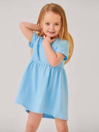 فستان سموك قطن موحدة اللون للبنات الصغار